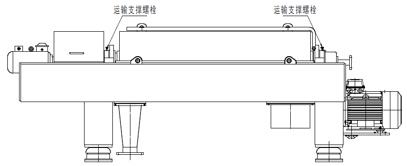 - 開(kāi)機(jī)前檢查離心機(jī)運(yùn)輸支撐螺栓( 共 2 個(gè) )等是否拆除,支撐螺栓的安裝位置位于軸承座的正上方,并用隨機(jī)帶的螺栓( M 16,長(zhǎng)度不得超過(guò) 40mm )予以更換;