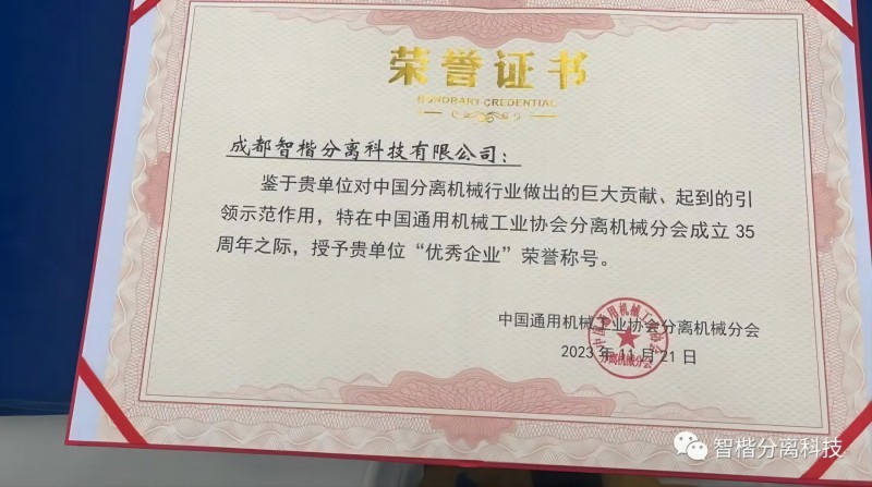 智楷分離科技有限公司榮獲了由中國通用機械工業(yè)協(xié)會頒發(fā)的 “優(yōu)秀企業(yè)” 榮譽獎項,智楷總經理涂金平先生榮獲 “優(yōu)秀企業(yè)家” 榮譽稱號、總工程師樓輝陽先生獲評 “優(yōu)秀科技工作者” 榮譽稱號。榮獲這三項殊榮,是分離機械協(xié)會對智楷過去努力的認可,更是對智楷未來發(fā)展的鞭策;是對我公司的高度贊譽,也是對我公司全體員工的熱情鼓勵。我們將繼續(xù)為行業(yè)的發(fā)展貢獻力量,積極參與協(xié)會的各項活動,推動行業(yè)經濟的繁榮發(fā)展。